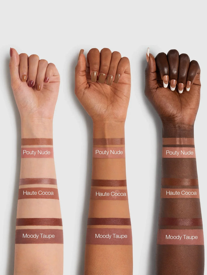 قلم تحديد الشفاه: يتميز بملمس ناعم ومخملي مطفي لا يتزحزح. يغذي شفتيك بمستخلصات نباتية غنية، مثل زيت بذور المكاديميا، زيت جوز الهند، وزيت بذور الجوجوبا، بالإضافة إلى زبدة الشيا. نباتي وخالي من الكحول.